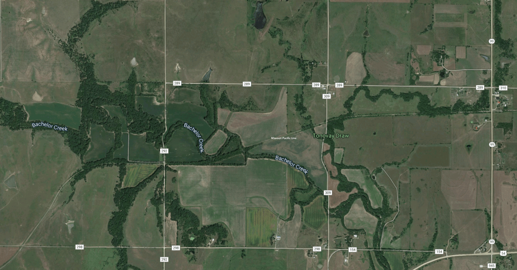 In the southern part of the township, the Missouri Pacific line travels east west. From the east, it travels through the town of Tonovay before it goes through the Crookham land to join the Atchison Topeka railroad into Eureka.