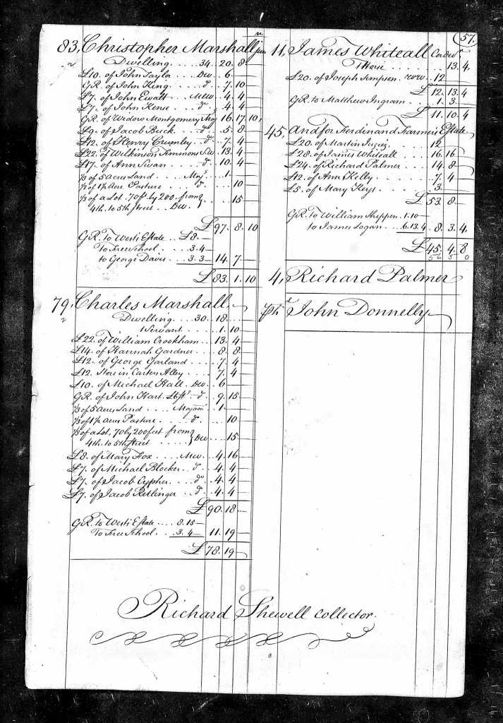 It is unclear how he is included, in that he seems to appear as a sub-item for the taxes of Charles Marshall who owed approximately 79 pounds.