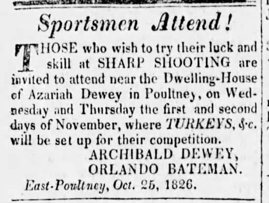Orlando Bateman ran this ad in the 25 Oct 1826 Northern Spectator, published in Poultney, where Joseph Bateman lived prior to moving to Rutland (city). It is possible that Orlando is one of his sons, or possibly a child of Eleazer Bateman, Joseph’s neighbor in 1790.