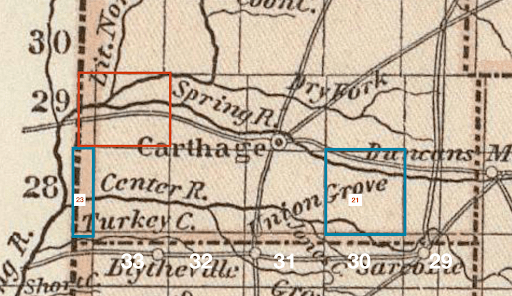 Moses remarried after the death of his wife Amanda, to Nancy Jackson. Baker who had acquired land near the Rickner’s and Melugin’s in the 1840s, acquired land on the western border of the county, near the border of Kansas Territory in the 1850s and 1860s.