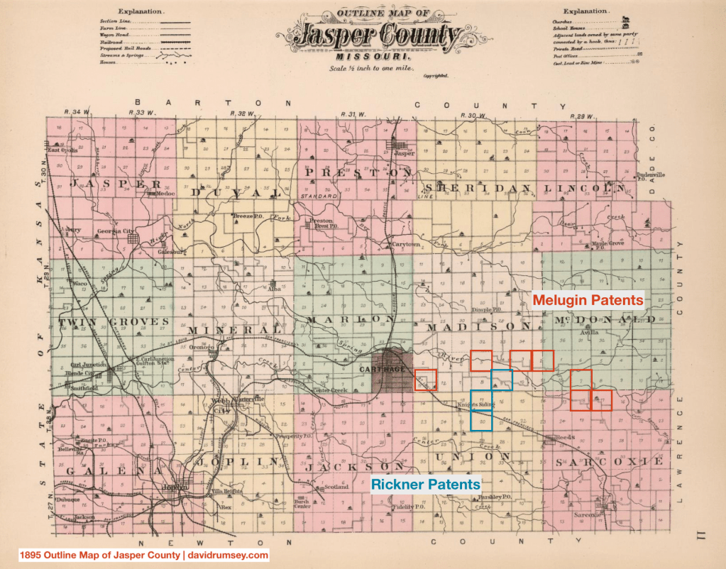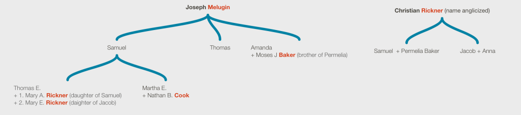 In 1851, Nathan B Cook married Martha E. Melugin, the daughter Samuel Melugin, a landowner near the Rickners in Jasper County.