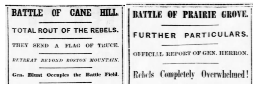 In the late fall and early winter of 1862, Cook with his regiment fought at the Battle of Cane Hill and the Battle of Prairie Grove, as the Confederate Army tried to regain entry into Missouri and take control of the border state. The Confederates lost both battles, and the regiment fell back to Van Buren, Arkansas. After participating in two overwhelming defeats, the morale must have been fairly low.