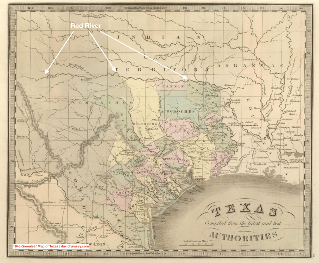 Europeans and Euro-Americans designated the Red River as boundary for a long time. The French and Spanish viewed it as dividing line in the 1700s, the US and Spain continued its use as a border in the 1819 Adams-Onís Treaty in conjunction with Mexico. The Republic of Texas used it as a boundary.
