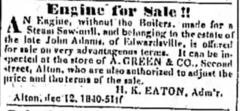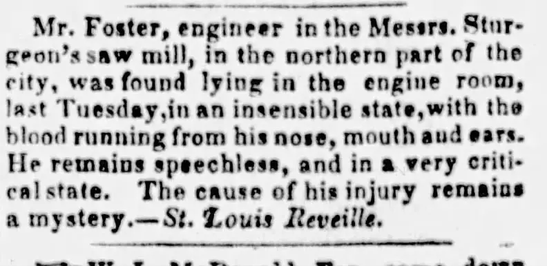 Engineers were employed to run the engines of the steam saw-mills. These news article from the 1840s help paint a picture of running a saw mill (with or without mysterious injuries).
